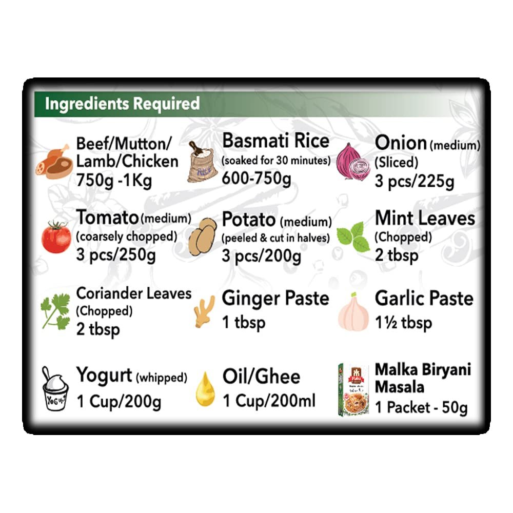 Made with carefully selected ingredients, Malka Biryani Recipe Mix contains no added MSG and is vegan, non-GMO, gluten-free, and Halal certified. Suitable for a wide range of dietary preferences, it ensures consistent flavor and authentic taste without compromise. Ideal for everyday meals, family gatherings, and special occasions, this spice mix brings the true essence of traditional biryani to your kitchen.
